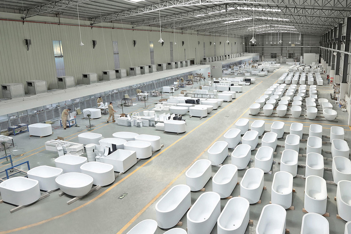 For Solid Surface, the company has three automatic production lines which produce Solid Surface sheets with max width 1520mm (60''), providing more than 300,000 standard sheets annually. Two plants, one is for cut to size projects and countertops fabrication; the other, 4500M2 Bathtub & Basins worktops, specializing in custom-made bathtubs, etc.